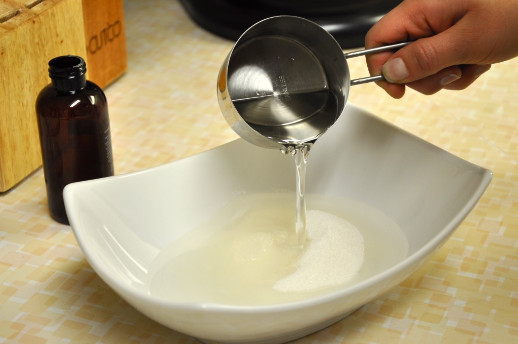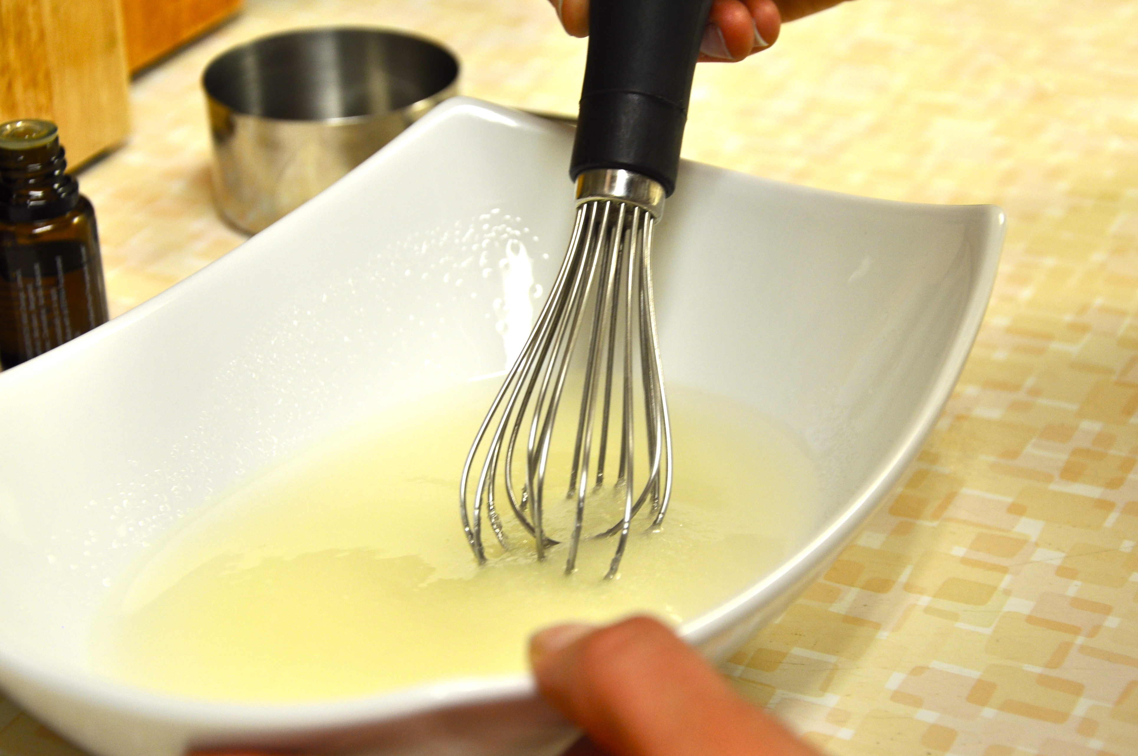 2. Measure out 1/2 cup of white sugar and fractionated coconut oil into a small or medium mixing bowl. (NOTE: dōTERRA’s 115ml bottle of fractionated coconut oil is just a tad short of filling an entire 1/2 cup. Don’t worry. This recipe doesn’t have to be exact. We do recommend dōTERRA’s fractionated coconut oil for best results, but if you don’t have any readily available you can use any alternative oil listed in the ingredient section above.)